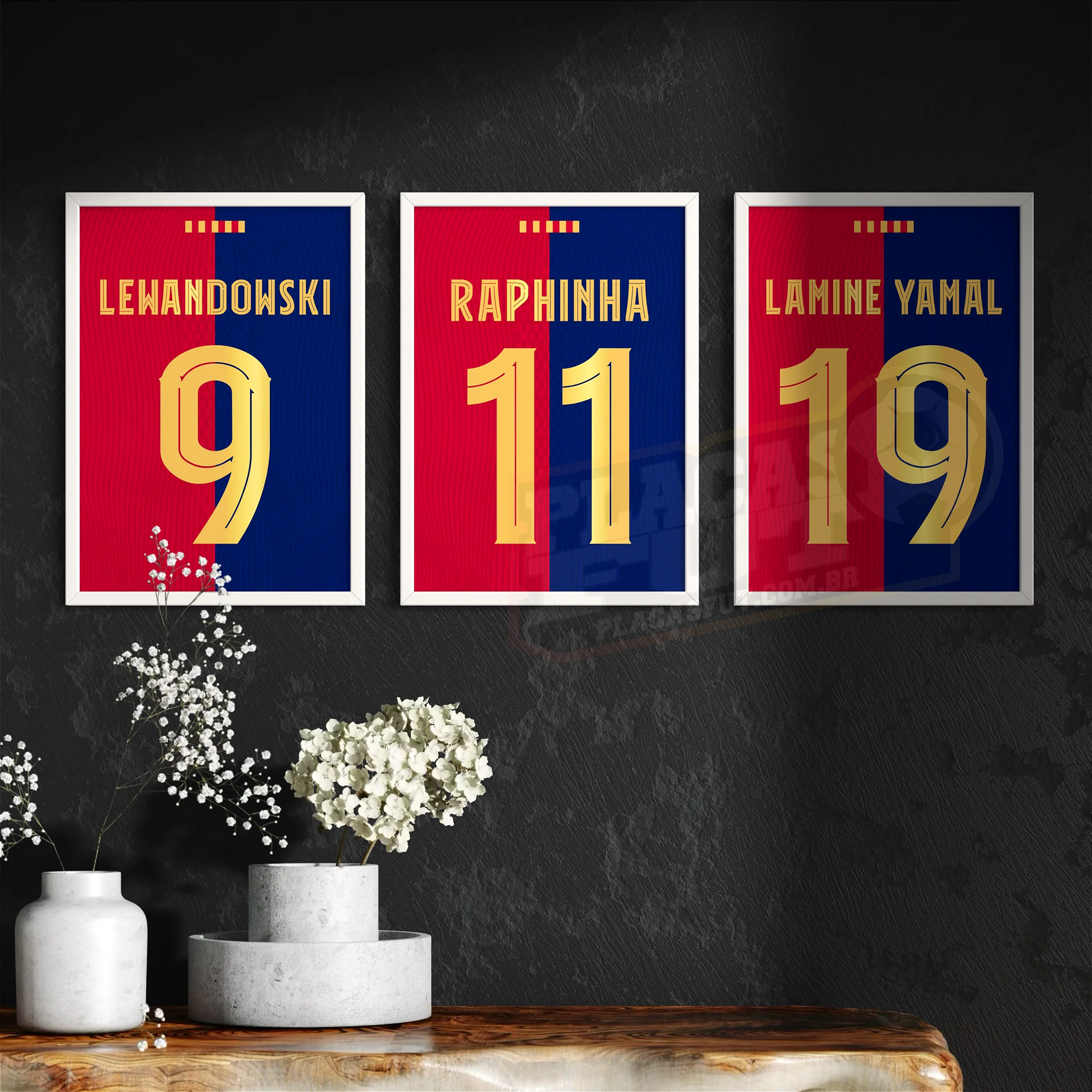 Kit 3 Quadros - Camisas Trio Lewandowski & Raphinha & Yamal