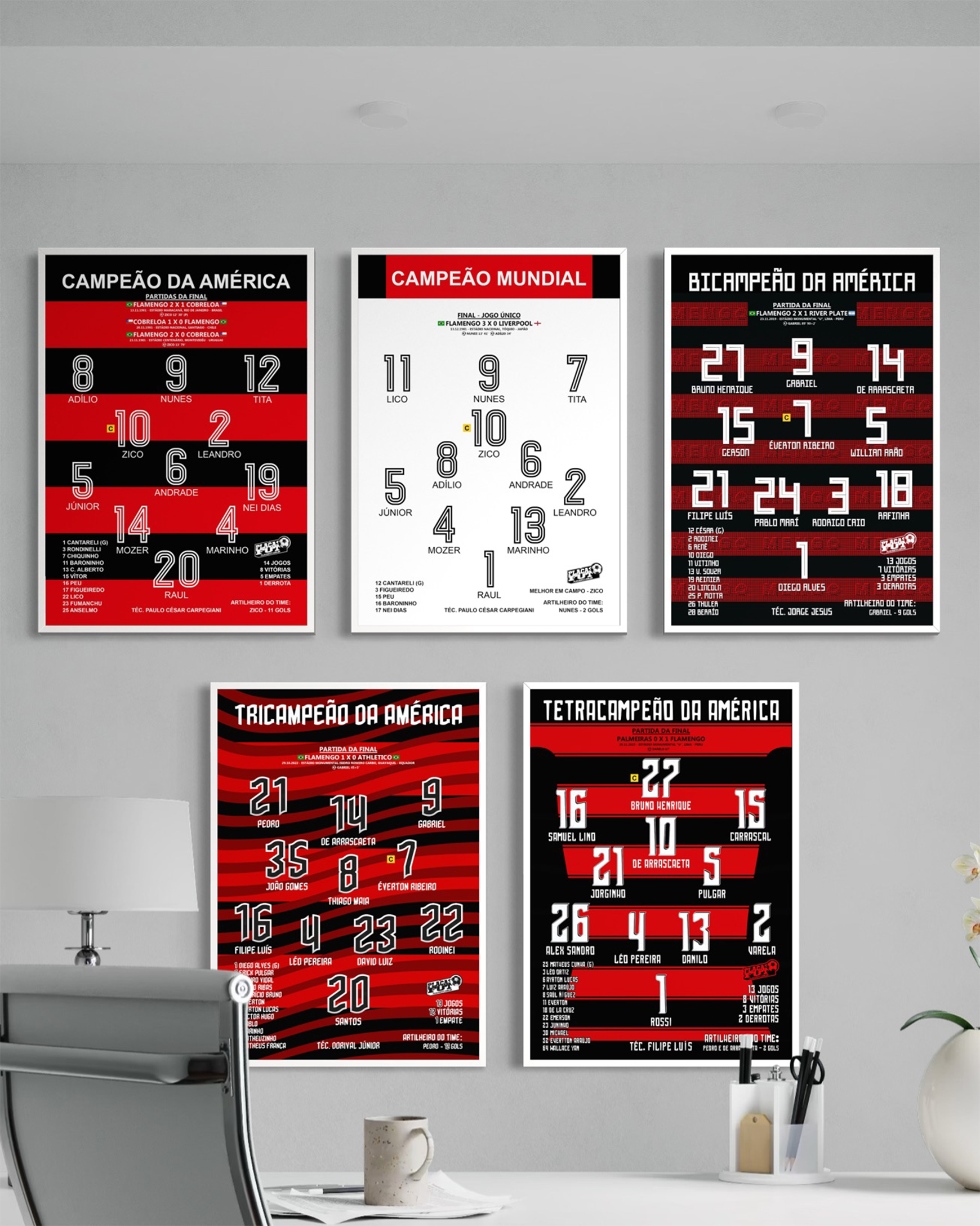 Kit 5 Quadros Escalações Históricas 1981/2019/2022/2025