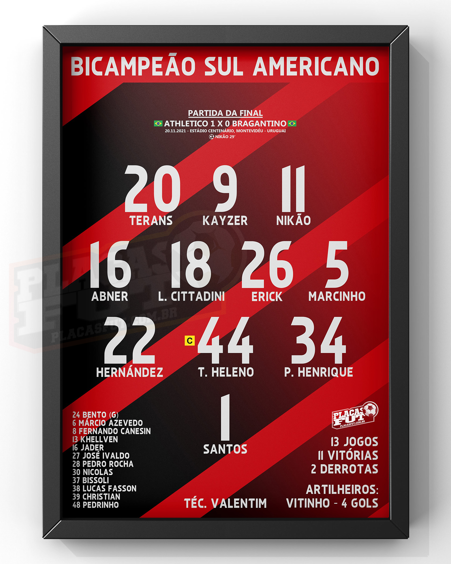 Quadro Escalação Campeão Sul Americano 2021